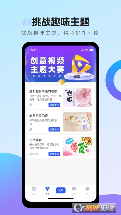 全民参赛模式,为短视频爱好者提供广阔舞台,生活点滴或创意视频,只要符合主题就能上传参赛,有机会瓜分百万现金并获荣誉。