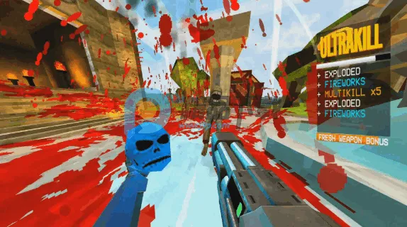 终极杀戮疯狂连杀中文版是一款复古风格的快节奏射击游戏。以高速移动弹反机制和多样武器为核心,玩家可滑铲冲刺躲攻击,击杀溅血回血,还有融合鬼泣的评分系统鼓励花式连招,关卡紧凑充满挑战。