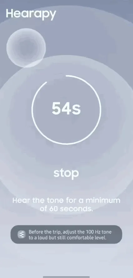 三星晕车应用Hearapy2026官方最新版本,源于日本名古屋大学科研成果。通过100赫兹音频缓解晕车,无需药物。界面极简无广告,操作简单,戴双耳耳机,出发前播放60秒左右,实测离线可用,效果因人而异。