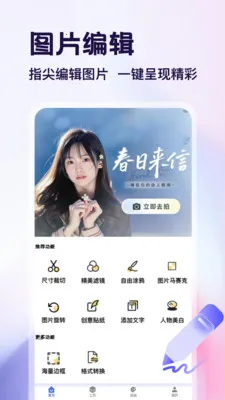 美漫免费相机(美漫拍照修图软件)v2.0.2 免费版美漫免费相机是一款拍照修图软件,有海量炫彩特效,功能简单易上手。能一键处理照片,自动推荐角度,支持修复旧照。还可单独保存漫画照,消除红眼美白牙齿,添加画笔效果,内置头像生成系统。