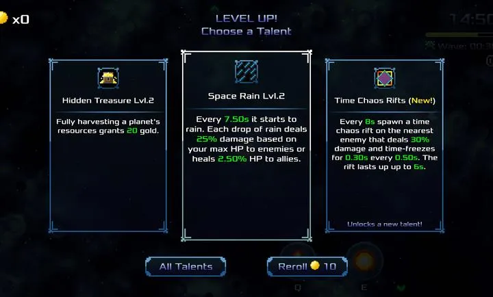 策略性玩法:利用外星人进攻间隙采集星球资源、与宇宙互动,为后续行动做准备。