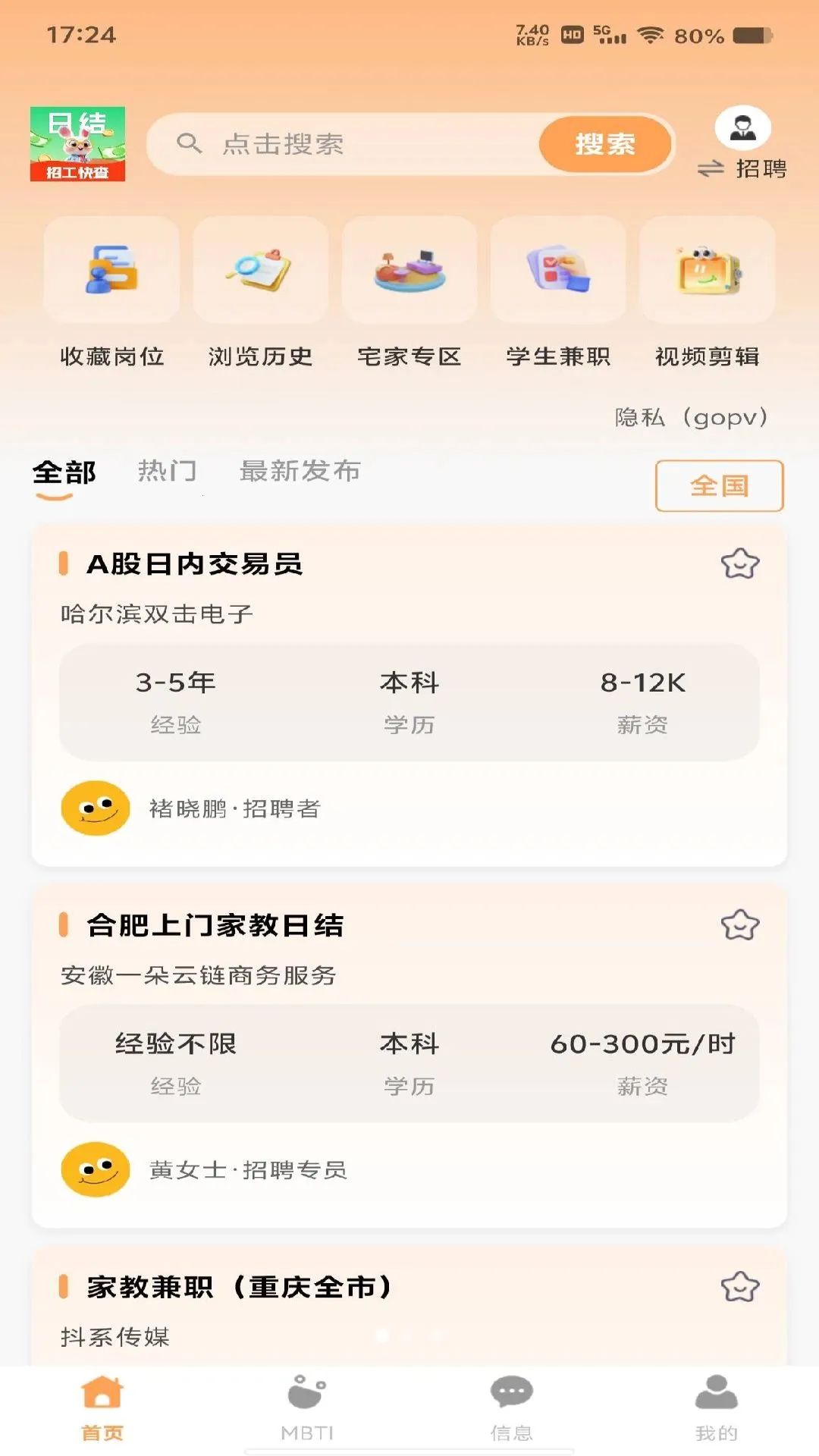 信息可靠:足不出户轻松找到合适零工,信息真实靠谱。