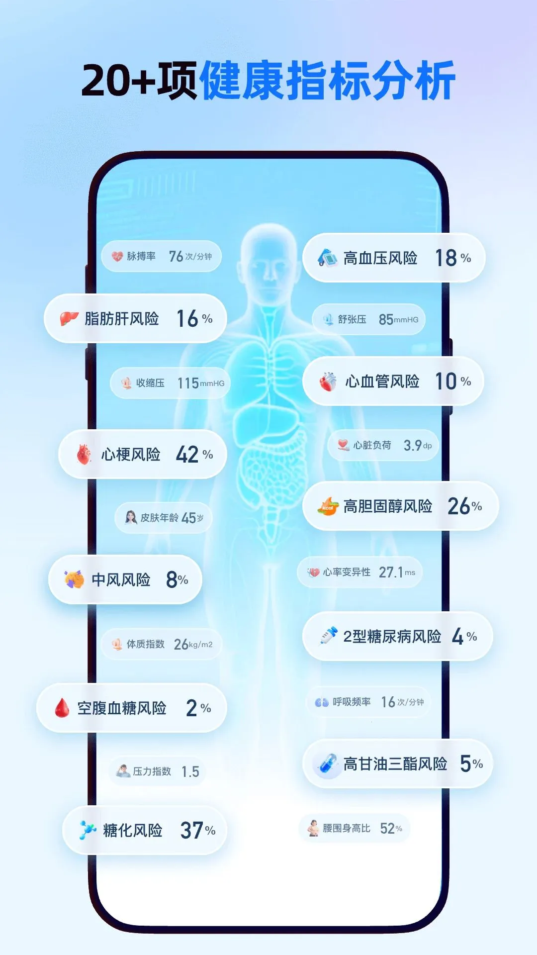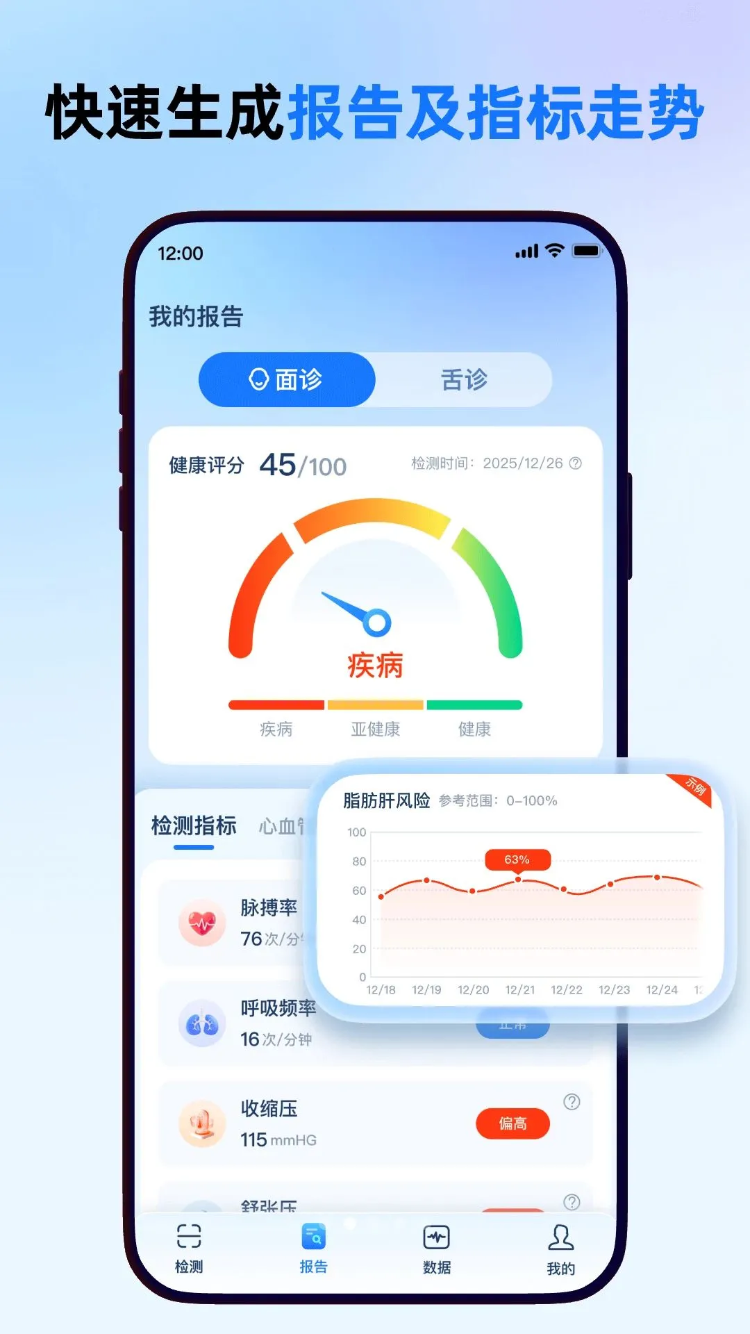 1便捷操作:仅需使用手机摄像头扫脸,无需额外硬件,轻松开启健康管理。