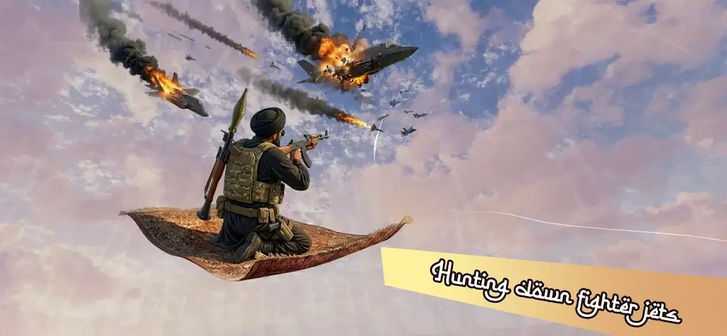 独特战斗体验:置身魔幻与现代战争融合的奇特世界,骑乘魔法飞毯穿梭天空,与敌机及高科技战斗机对抗,下方荒漠增添压力,带来全新战斗感受。
