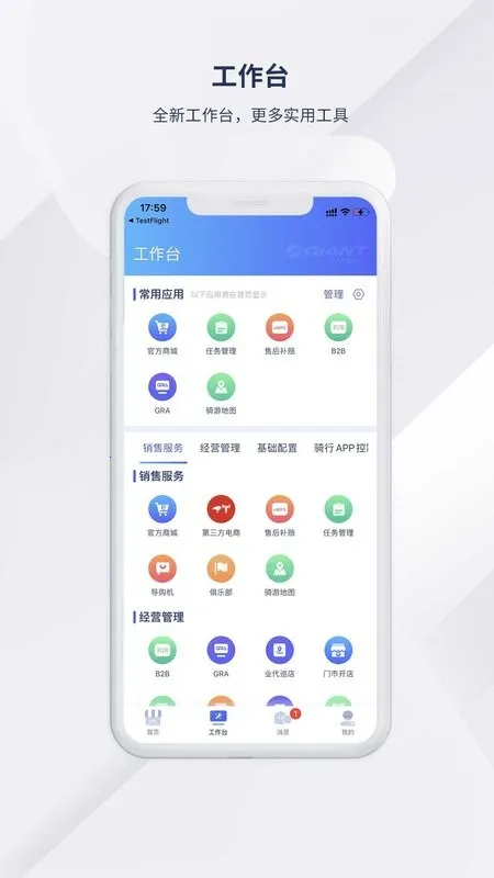 捷安特经营助手app是为深入服务全国门店通路与公司业务往来打造的平台。可管理门店、查看销售数据,有多种实用工具,能实时发布公告,实现远程管理,具备数据管理、分析等功能,保障资金与支付安全。