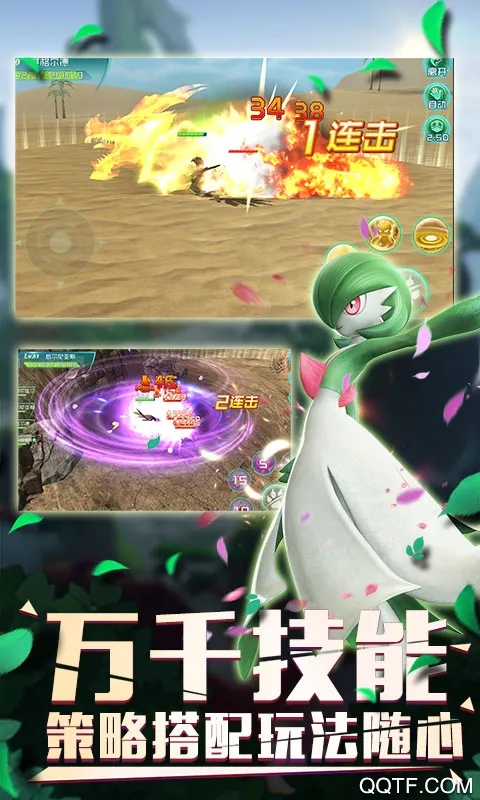 2、特色精灵:上百种精灵外观属性技能各异,玩家可在户外捕捉,精心训练培养。