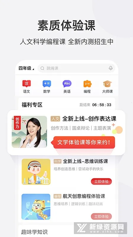 学而思网校是一款备受关注的在线学习软件。它涵盖小学、初中、高中的数语外、物化生等主要学科,能帮孩子牢牢掌握知识要点。其课程设计以人文和科学为核心素质基础,构建多元能力模型。特色课程丰富,像人文创作培养孩子学习力、思考力和沟通力;科学思维启发思考,培养多种能力;编程与机器人提升思维,解决实际问题。在线专属功能超棒,主讲老师面对面互动授课,辅导老师在线伴学答疑,课程期限内可无限次回放,家长还能在线旁听。科技助力课堂,有学习报告、互动课堂、智能识别和智能语音等。在这里学习,孩子能得到全面发展,提升学习兴趣,增强参与感,学习不枯燥。而且现在还优化了部分功能,提升了上课体验哦。如果你想让孩子更好地学习,不妨来试试学而思网校。