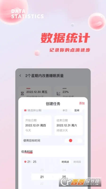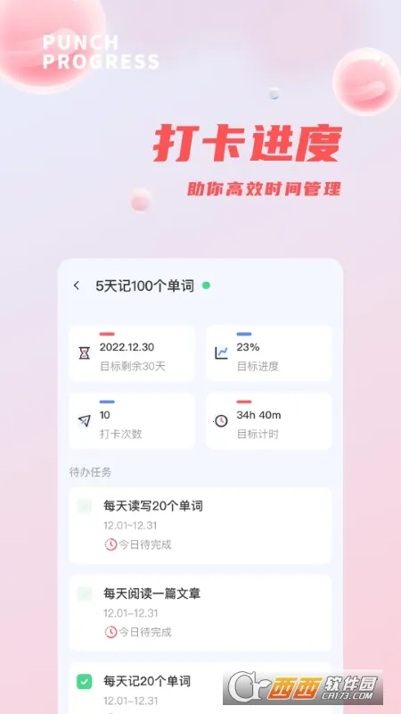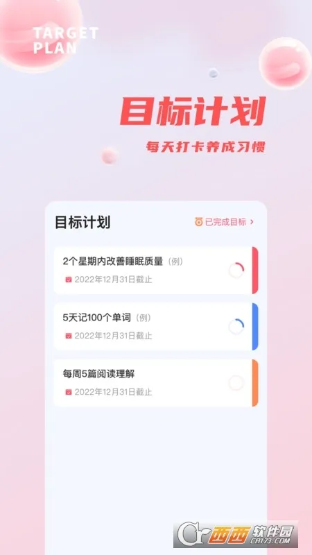 3、目标进度量化:制定宏观目标后,可设置小任务,以丰富样式展示进度。通过量化目标,让用户清晰看到努力成果,增强成就感,告别拖延,稳步向目标迈进。
