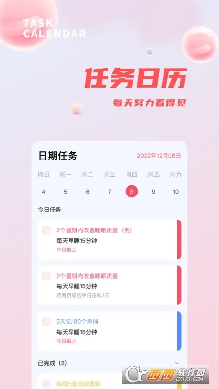 2、极简打卡设计:界面简洁无复杂操作,专注每日成长。完成目标后一键打卡,将精力更多放在行动上。