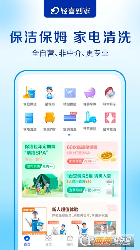 轻喜到家是全自营的生活服务平台,提供保洁保姆、家电清洗等服务。自营员工经严格筛选培训,四证齐全。服务涵盖多品类,专业工具高效洁净,为600万家庭提供优质有保障的到家服务。