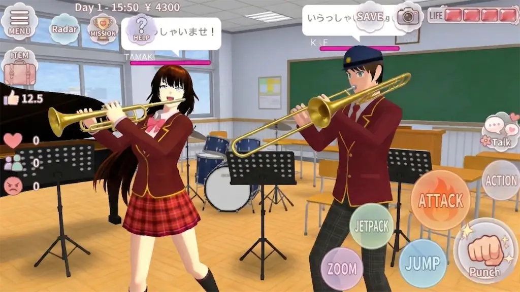 4、丰富任务剧情:有协助老师组织活动、解开校园谜团等各种挑战任务,还有无血动作战斗环节,构建活力四射的校园故事。