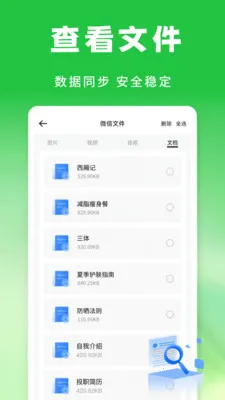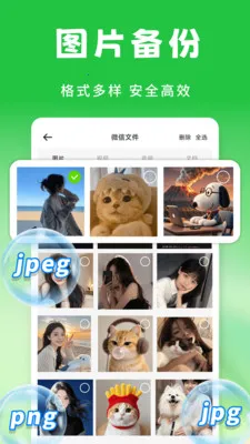全面支持:支持常用社交应用的聊天记录及图片文件备份,涵盖文档、图片、视频等。