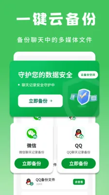 微聊天记录备份云(文件备份加密)v1.0.7 官方正版微聊天记录备份云可精准备份聊天记录中的珍贵图片视频,先下载至手机再备份到云端。还能一键全量备份手机本地照片、视频、音频等文件,均加密存于云端,优化体验,留存美好。