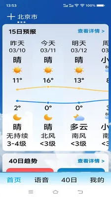 5. 超长40日预报:支持40天超长逐日天气预报,提前掌握未来天气,搭配日历功能,节日节气天气一目了然,便于做好出行与生活规划。