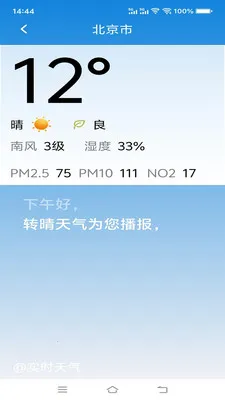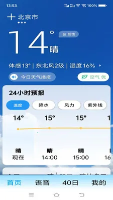 3. 贴心语音播报:无需手动查看,一键开启语音播报,实时播报当日温度、天气预警、穿衣建议、空气质量及未来天气等想听的信息。