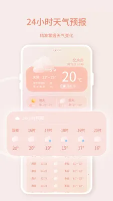 手机实时天气(天气生活助手)是超精致天气预报 APP,粉配色满足少女心。提供 24 小时实时天气、15 日预报、空气质量指数等。有天气明信片等特色功能,还优化了部分功能,助你掌握天气变化。