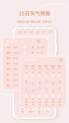 如果你想关闭手机实时天气,不用担心,这里有个超精致的天气预报APP或许能帮到你。它配色粉嫩,超有少女心。能提供24小时实时天气、15日天气预报、空气质量指数和生活指南等。数据超准,让你随时掌握天气变化,不再为没带雨具而烦恼。24小时天气可实时获取指定位置的天气预报和空气质量指数;15日天气预报能清晰看到15日内天气气象气温变化,列表和曲线模式任你选,方便预知未来出行。空气质量指数实时显示指定位置的空气质量信息。生活指数帮你判断当天适合做什么,不再纠结。还有天气明信片功能,能记录分享好天气;万年历黄历可一键查询今日利弊;那年今日能让你知晓历史上当天发生的事。有了它,你能轻松管理天气相关功能,满足你的各种需求。