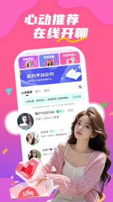 星诱视频聊天(交友视频平台)v1.7.0 官方正版星诱视频聊天是火爆的约会交友平台,支持一对一视频聊天,有闲聊交友等多种方式。能和各类美女交流,可发布动态展示自己。24 小时颜值在线,附近动态不停,还有真人小视频、秘密语音,新版增加新功能。