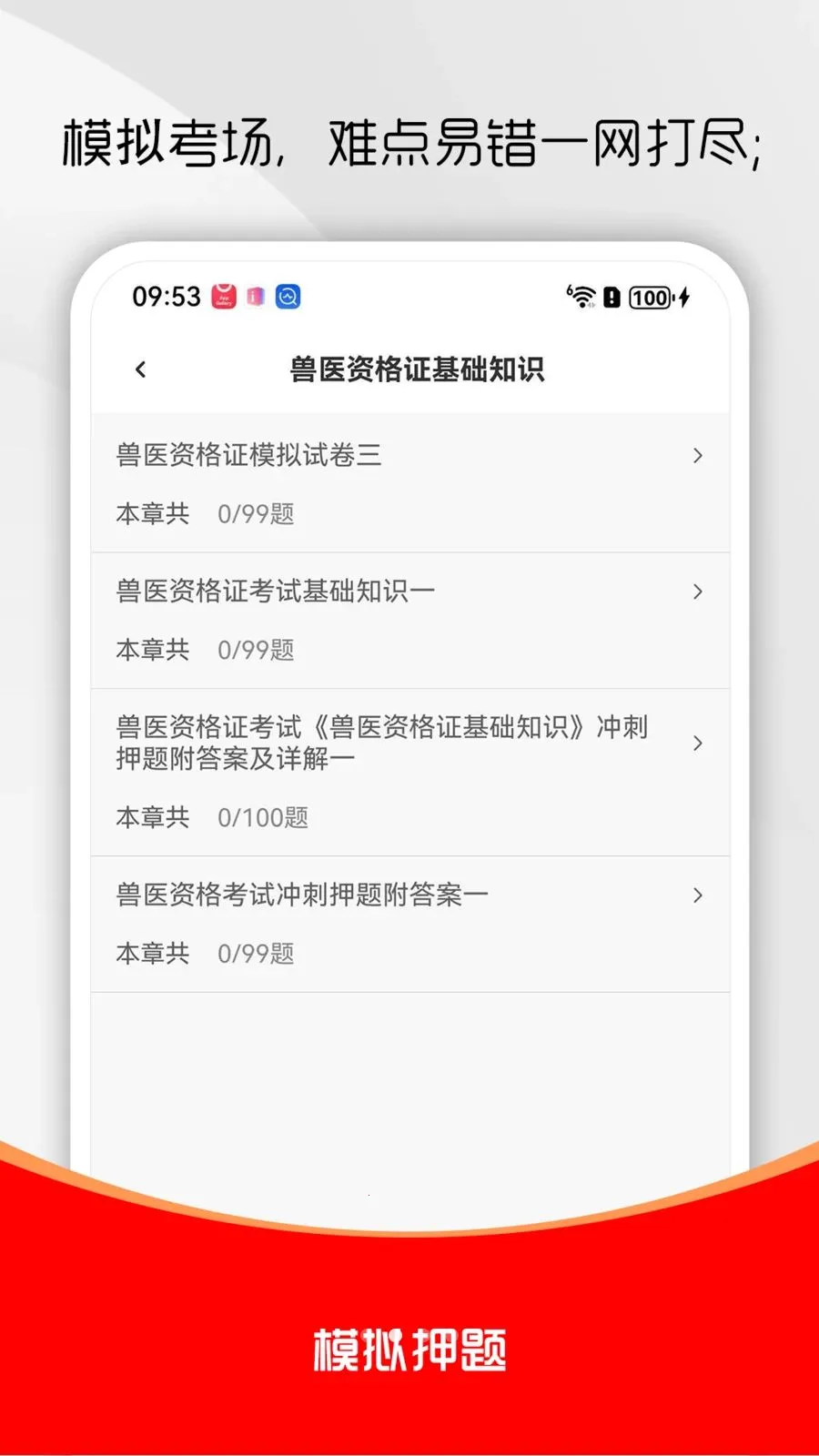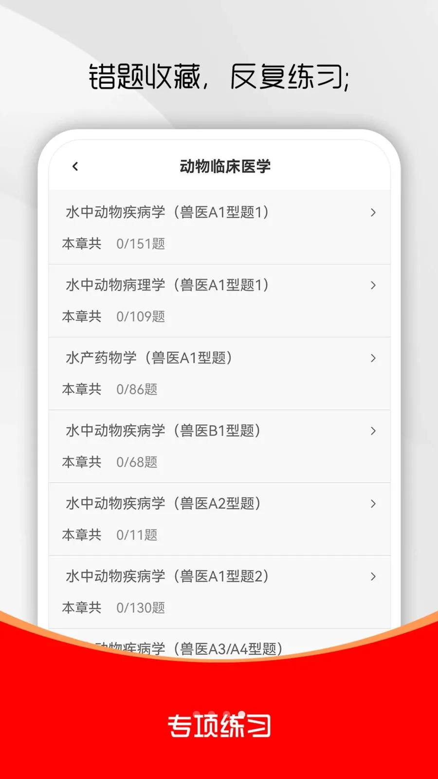 执业兽医考试题库软件有最新考试题库,含答案解析。涵盖历年真题、章节练习、模拟押题等,能错题收藏。有章节专项练习,可考场模拟,还含近十年真题解析,真题押题更新助你顺利通过考试。