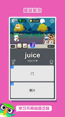 这款单词学习软件给人留下了深刻印象。它以独特创新的设计,将学习与挑战升级养成巧妙融合,采用轻松有趣的自然学习方式,助力用户持续学习并完成目标计划。资源累积性更新让学习内容不断丰富,安卓最低SDK版本调高到21也体现了其与时俱进。在学习过程中,能真切感受到它的用心。背单词不再枯燥,而是充满乐趣。无论是词汇量的提升,还是学习习惯的养成,它都发挥了积极作用。对于想要高效学习单词的人来说,它无疑是一个值得信赖的选择,能陪伴大家在单词学习的道路上稳步前行。