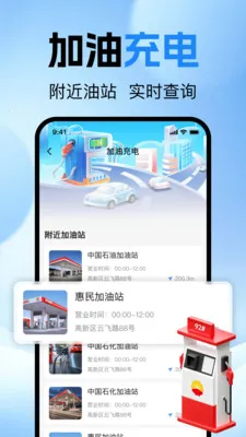 能源补给查询超便捷,支持附近加油站、充电站实时查询,展示站点位置、营业时间等信息,助车主快速找到补给点,高效规划行程。