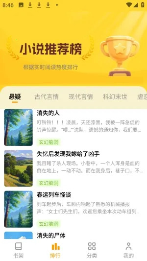2、我们可以随时查看小说排行榜看看最新热门作品。