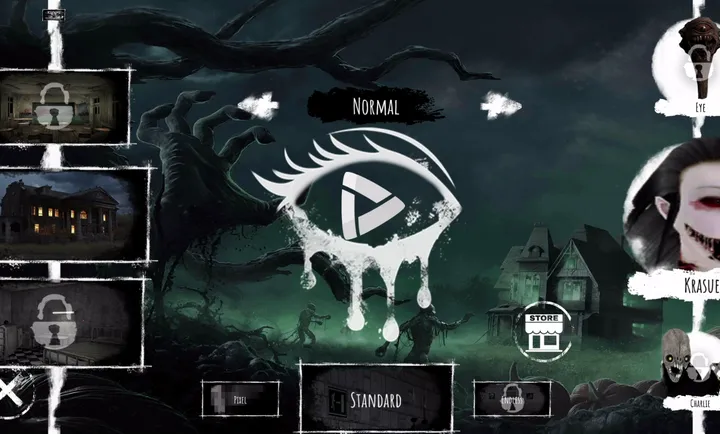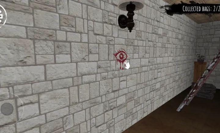 细节丰富,墙壁上画着眼睛,触摸后能显示建筑物内不同位置的可怕图像,增添恐怖氛围。