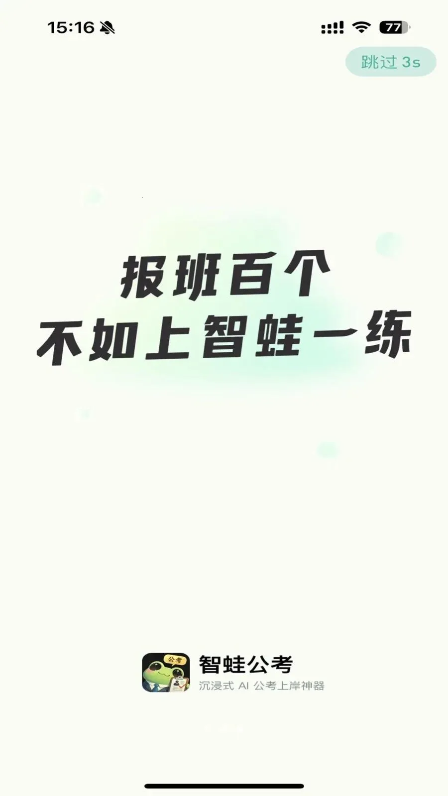 智蛙公考真的太实用了!对于在职备考时间碎片化的人来说,每天只需30分钟就能高效练习,不浪费一点时间。在校备考经验为零的考生,它有完整体系,从行测到申论再到面试,一路指引。全职冲刺压力大的考生,能精准知道自身薄弱点,把练习用在刀刃上。一个App全搞定,价格超划算,几百块就能解决大问题。AI面试批改能听考生说完再细致批改,出完整报告还有高分对比;AI申论批改拍照就出结果,详细剖析问题。精选独家内容丰富,价格亲民,适用多种考试,免费体验就能感受其魅力,难怪已有10万考生在用它备考。