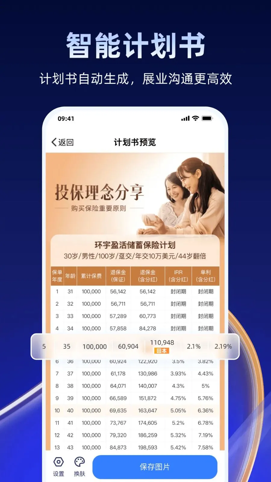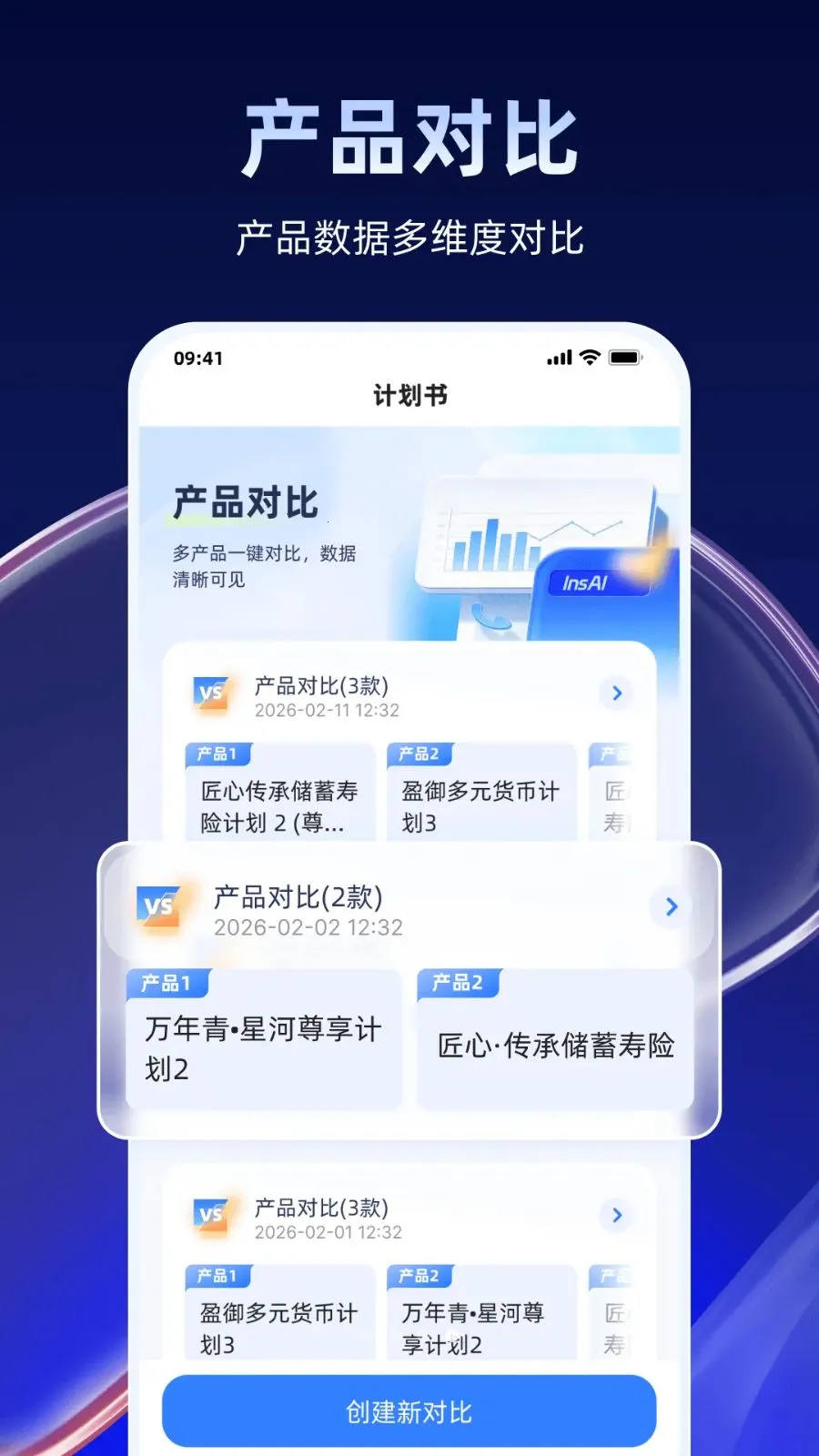 3. 结合专业知识库与大语言模型,高效辅助产品学习、客户准备与现场答疑,大大提升展业效率与服务专业度,还有新增一键制作计划书和产品对比等新特性。