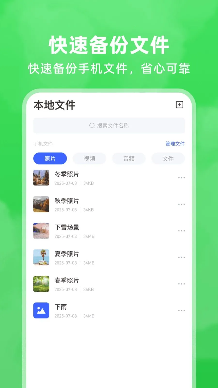 2、操作简单易懂,分类清晰,加密存储更放心,告别误删与换机烦恼,无论是工作文件归档还是珍贵影像留存,一款应用全搞定。