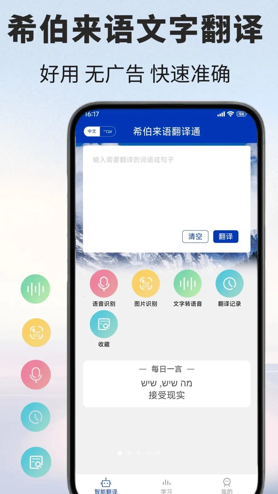 希伯来语翻译通 2026 官方最新版本,支持文字、语音、拍照等多种翻译方式,准确度高。具备希伯来语学习背单词功能,涵盖多种学习模式,海量词库持续更新,还有新特性新功能,满足多样需求。