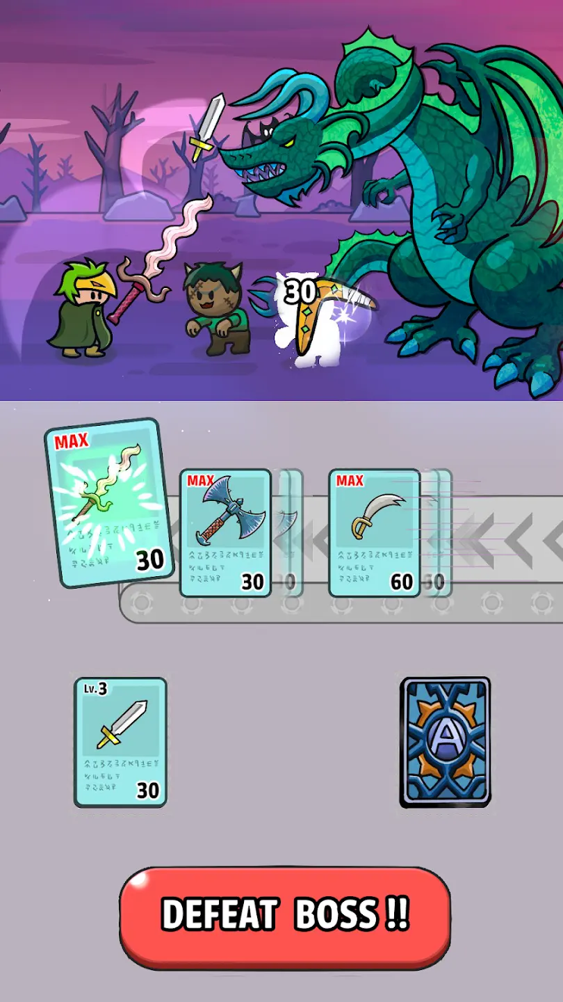 4. 独特升级系统:提升生命值、传送带速度及下一轮可带卡牌数量,不断升级打造专属独特卡组。