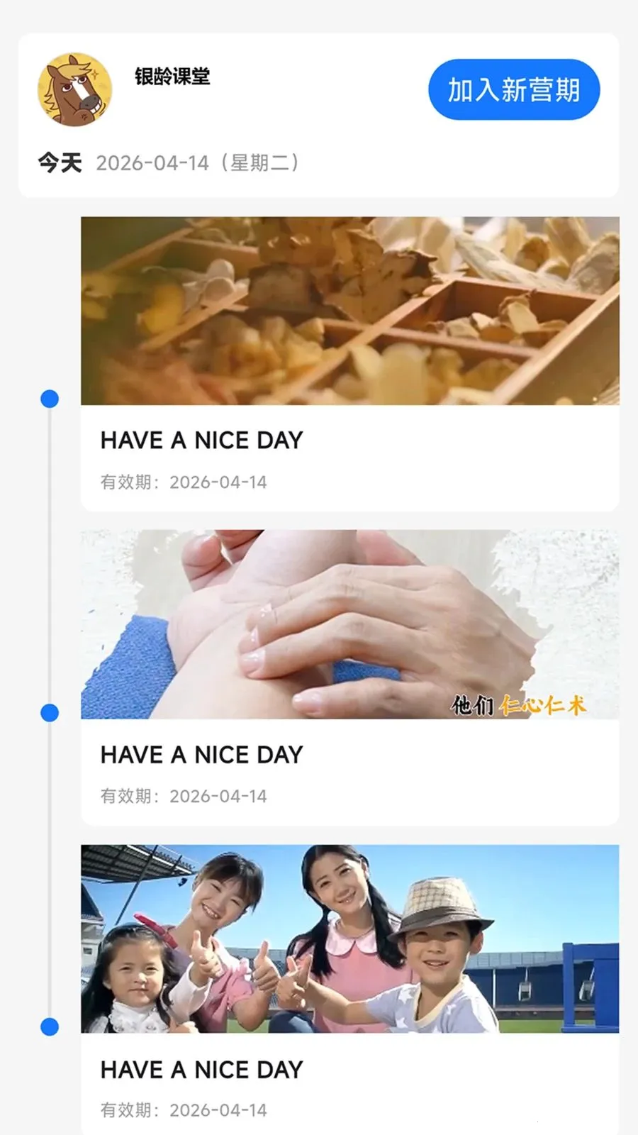银龄课堂是专门为老年人打造的学习平台。这里设置了各类实用训练营,涵盖智能手机使用、健康养生、书法绘画、太极养生、声乐合唱、智能手机摄影等多个领域。无论你是想学会如何用智能手机拍照记录生活,还是想了解健康养生知识,亦或是对书法绘画感兴趣,都能在这里找到适合自己的课程。课程兼顾实用性与趣味性,全程适配老年人操作习惯,字体清晰,步骤简洁,无需复杂操作,轻松就能上手参与。通过银龄课堂,老年人可以足不出户,在家就能学习各种知识和技能,丰富自己的生活,增添生活乐趣,让晚年生活更加充实有意义。快来加入银龄课堂,开启属于自己的精彩学习之旅吧。