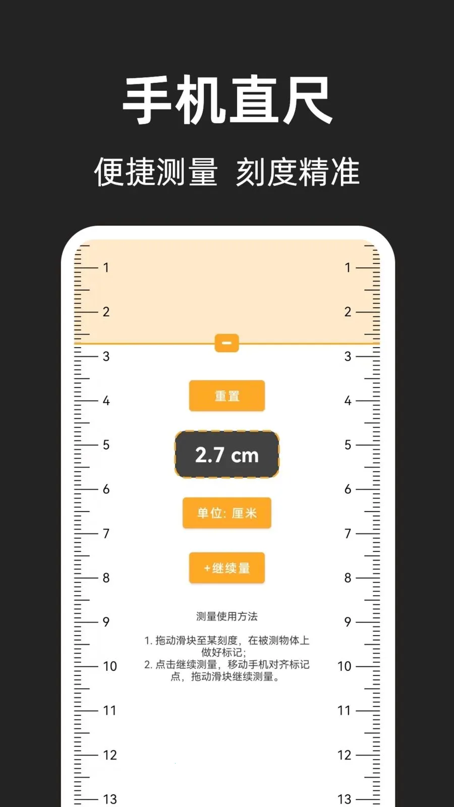 1. 精准测量:手机直尺基于屏幕像素密度自动校准,测量误差较小,能准确测量小型物体长度。
