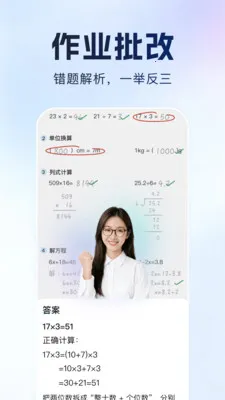 1. 功能全面:集拍照搜题、作业批改、作文点评、错题管理、AI问答于一体,全方位解决学习问题。