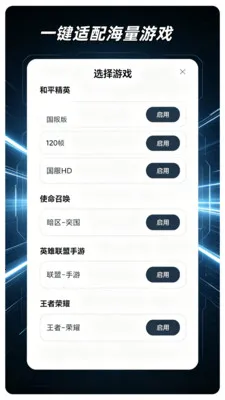 2、适配多游戏:支持选择和平精英、使命召唤、英雄联盟手游等多款游戏进行适配,能为不同游戏定制专属画质。