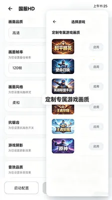 支持适配多款热门游戏,能定制专属画质。