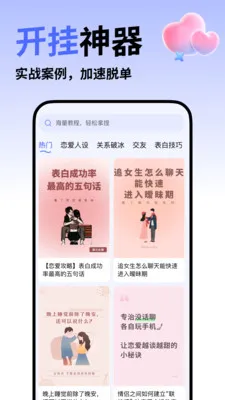 提供实战恋爱案例快速教学,加速脱单进程,让恋爱之路更顺畅。