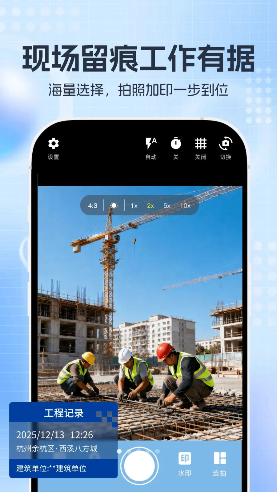 1、拍完照能直接添加日期时间和位置信息,无需单独编辑,快速留存关键拍摄信息。