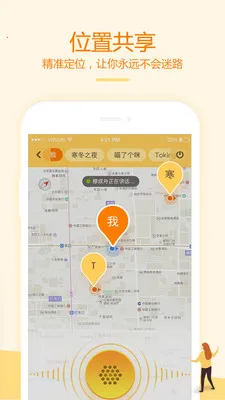 4、位置共享:能显示成员位置,实现位置共享,随时掌握组员位置动态。