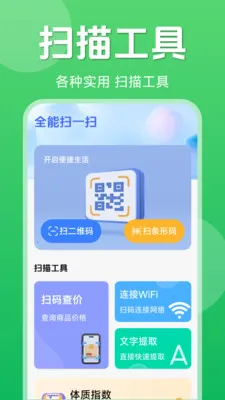 你是否常常为找不到便捷的扫码方式而烦恼?别担心,有一款超棒的扫码工具能解决你的问题。它集扫描与生成功能于一体,操作简单易懂。双码识别超厉害,二维码和条形码都能快速精准扫描,无需反复对准。生活场景全覆盖,扫码查商品价格超方便,还能一键连接WiFi,省去输入密码的麻烦,纸质文字扫描后直接提取,告别手动录入。健康方面,输入身高体重就能生成体质指数BMI查询二维码,方便进行健康管理。而且它支持自定义二维码生成,可为链接、WiFi、联系方式等内容创建专属二维码。有了它,无论是生活购物还是关注健康,扫码都不再困难,轻松满足你的各种使用需求,赶紧试试吧!