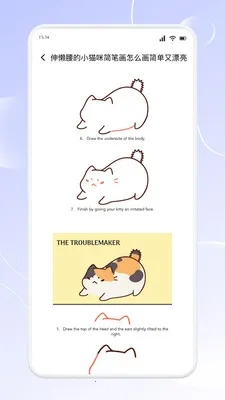 2. 海量分步教程:提供海量简笔画分步教程,从可爱猫咪到趣味造型,零基础也能快速上手。