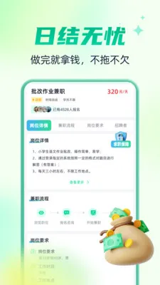 6. 有随手赚外快日结保障,主打当日结算透明回款,薪资明细全程可查。