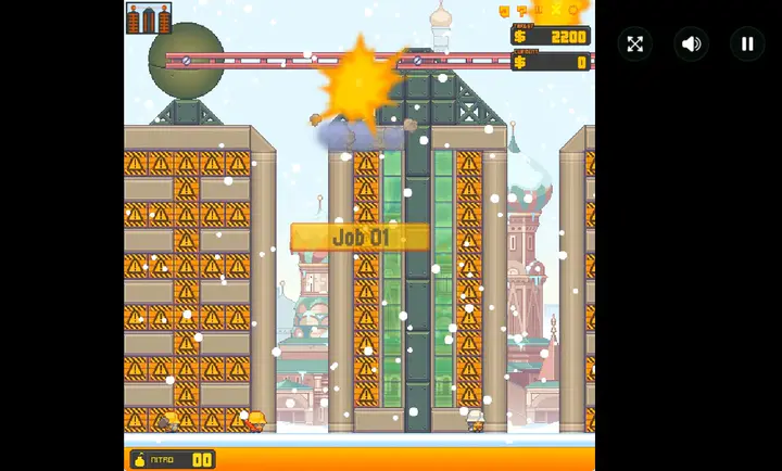 《高楼爆破:莫斯科Flash移植2026官方正版》是英国Nitrome工作室开发的RubbleTrouble系列第三部Flash物理解谜建筑拆除游戏。玩家要用工具精准拆除目标建筑达成金钱目标,规避保护建筑与工人,共30关,含20个莫斯科关卡和10个太空关卡。