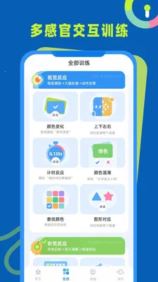 2. **丰富视觉反应训练**:涵盖颜色变化、上下左右、计时反应等多种视觉训练模块,全面提升视觉反应速度与相关能力。