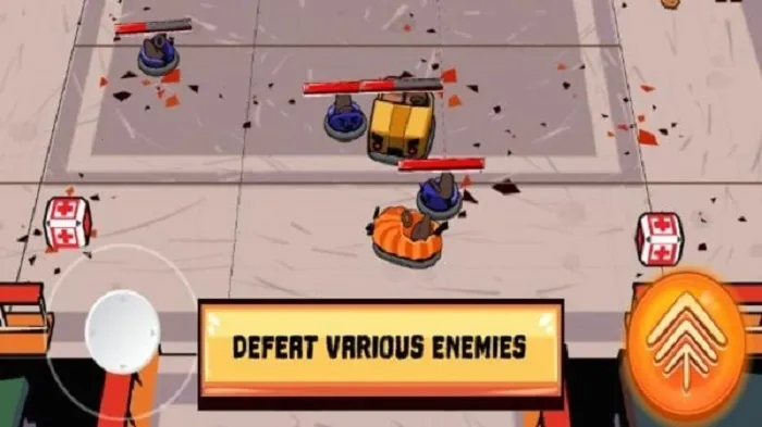 答:通过撞入敌人或将其推离竞技场来击败敌人。