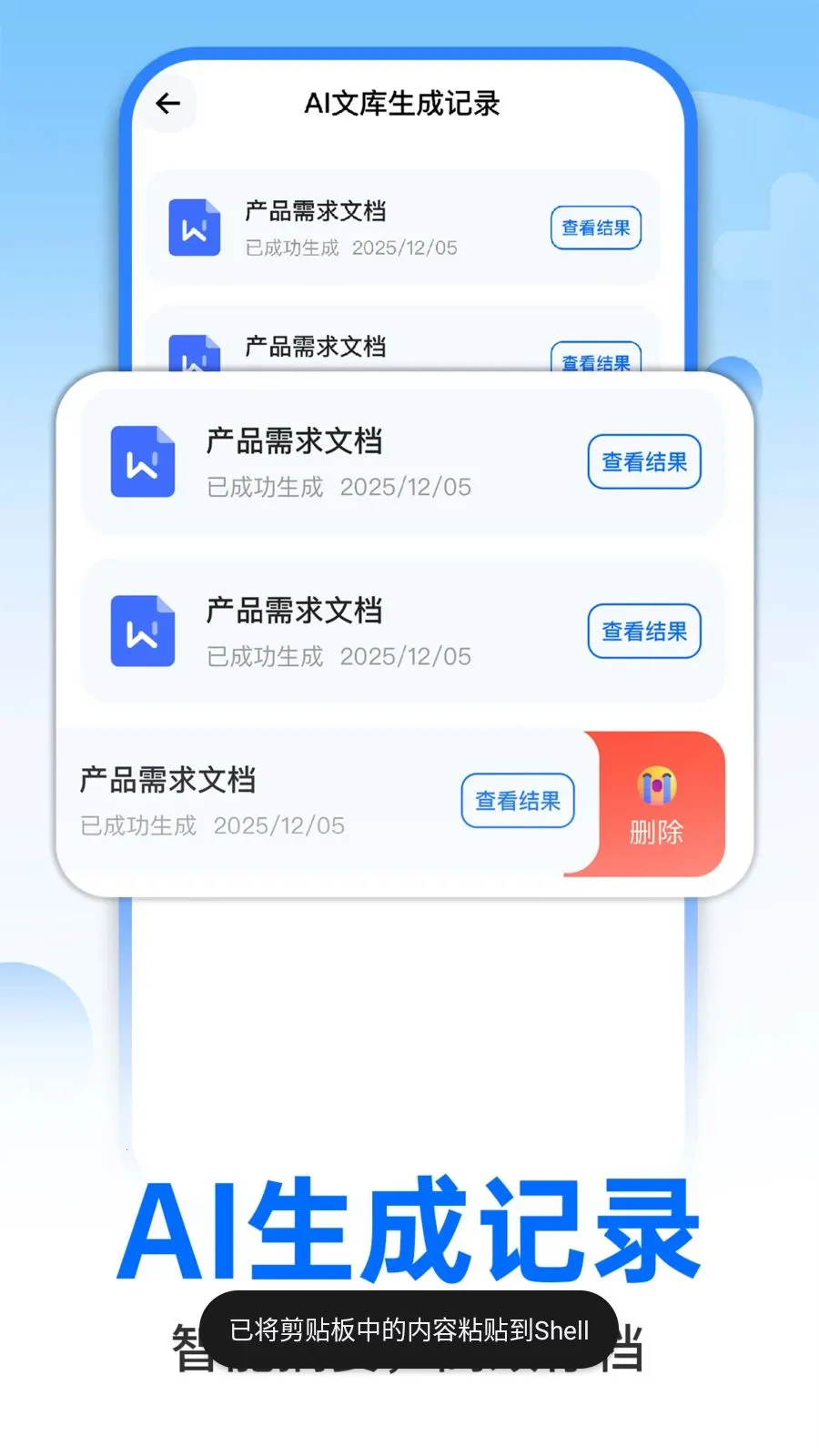 4. 自动留存生成记录,支持智能摘要与高效存档,能随时查看管理历史生成结果。