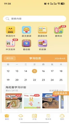 1. 打开“萌呀乐园2026官方正版”,海量中英文绘本、动画视频及阅读素材任你选,满足孩子多元学习需求。