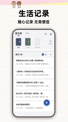 你是否渴望一款能全方位记录生活的工具?这款 APP 就能满足你。它支持文字、图片、语音、视频等多种记录方式,无论是一闪而过的灵感,还是当下的心情,亦或是旅行中的精彩瞬间,都能完整留存,让回忆清晰有迹可循。而且,它还有每日规划提醒功能,待办事项搭配通知提醒,能帮你合理安排学习、工作与生活,告别拖延,轻松养成高效自律的好习惯。其设计简洁清爽,没有冗余之处,操作简单易上手,随时随地打开就能用。从日常的琐碎小事到重要计划,它都能帮你理清思路、记录生活,让每一天都过得有条不紊,真正成为你生活中的贴心小助手,让你尽情享受记录与管理生活的轻松愉悦。