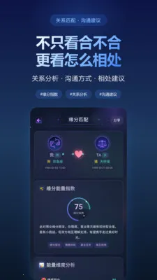 4. 关系匹配不光看分数,还教相处方法:双人性格命理多维度智能对比,呈现相处核心特质,自动生成沟通方式、相处节奏与改善建议,贴合日常场景,建议实用可落地。